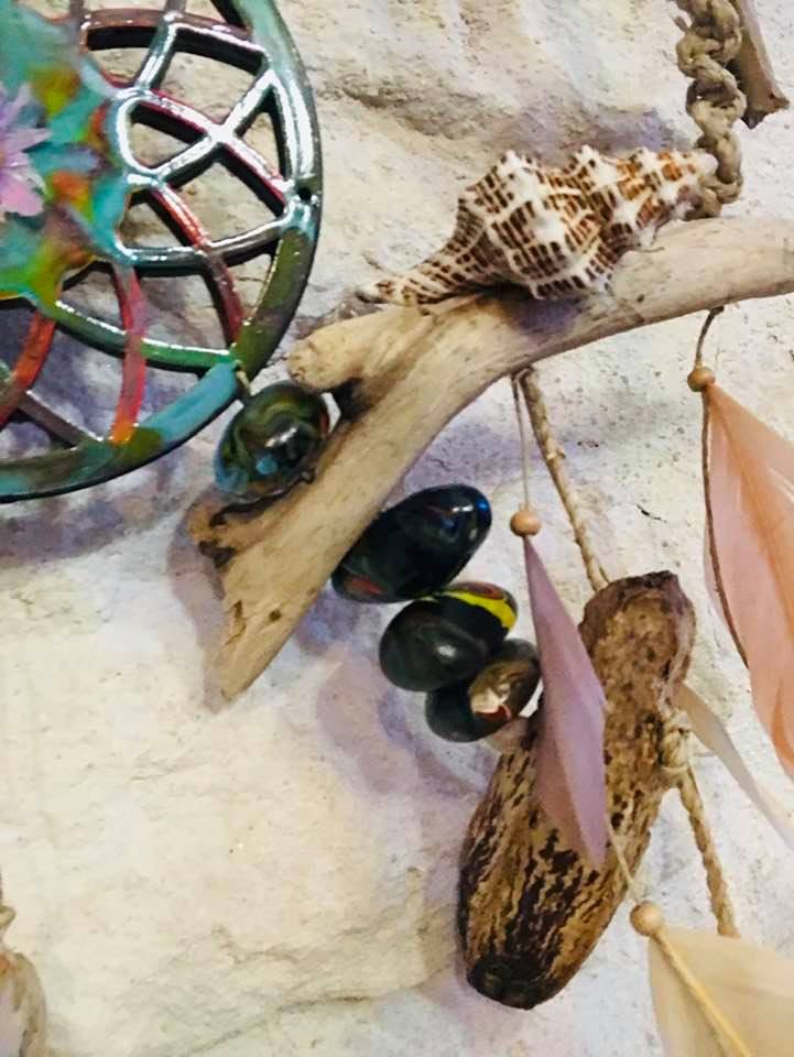 Attrape-rêve végétal , réalisé avec des graines, branche de pommier & coquillages